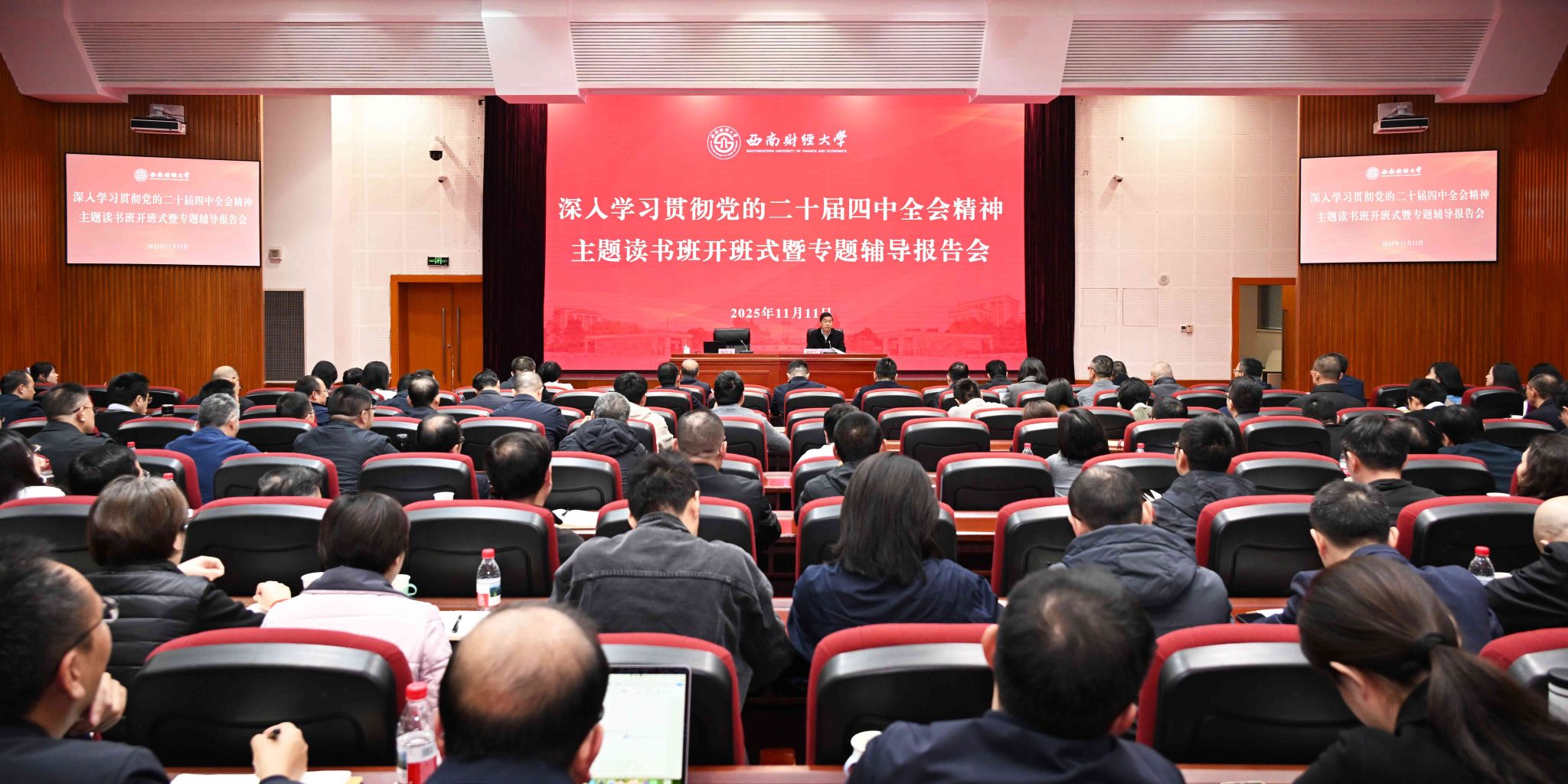 11月11日,学校在腾骧楼137会议室举行深入学习贯彻党的二十届四中全会精神主题读书班开班式暨首场专题辅导报告会。党委书记赵建军主持...